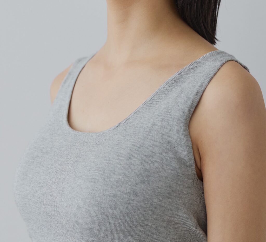 タンクトップタイプで嬉しいのは、何よりも脇や二の腕周りの煩わしさがないこと!