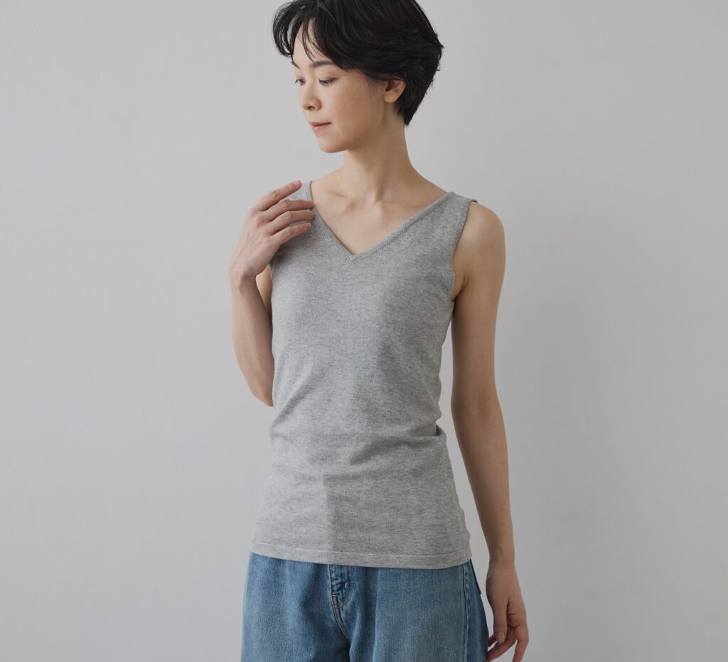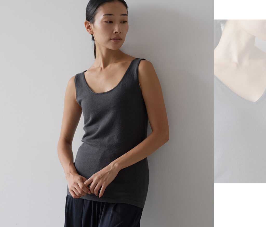 なにを着たらいいのか迷う端境期にピッタリなのが、タンクトップタイプのニットインナー。