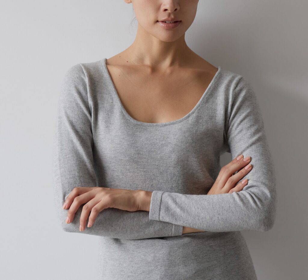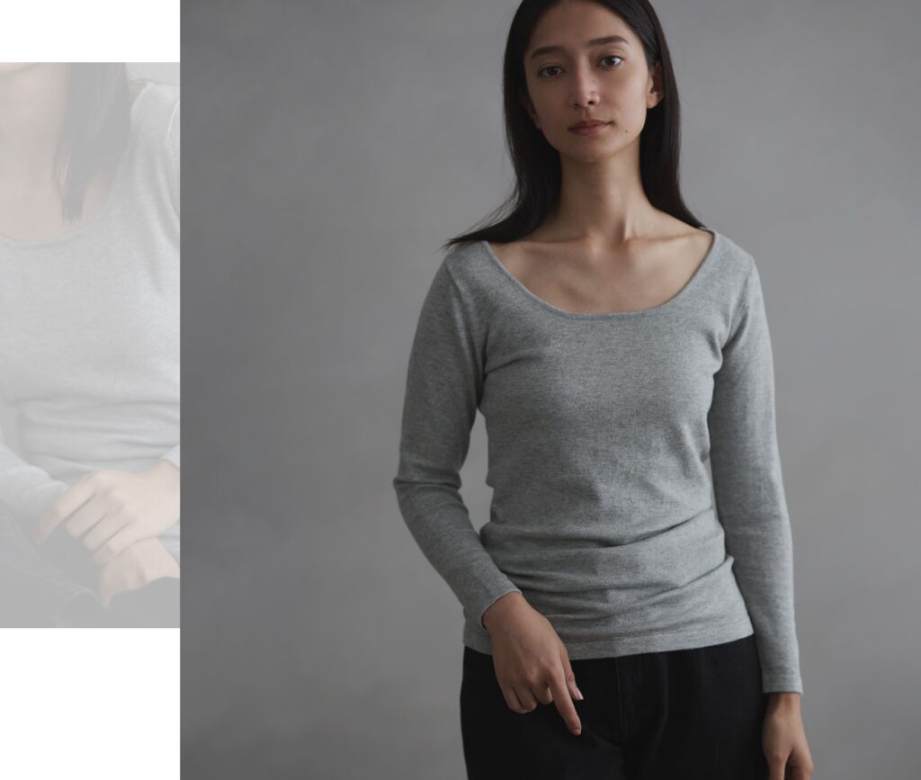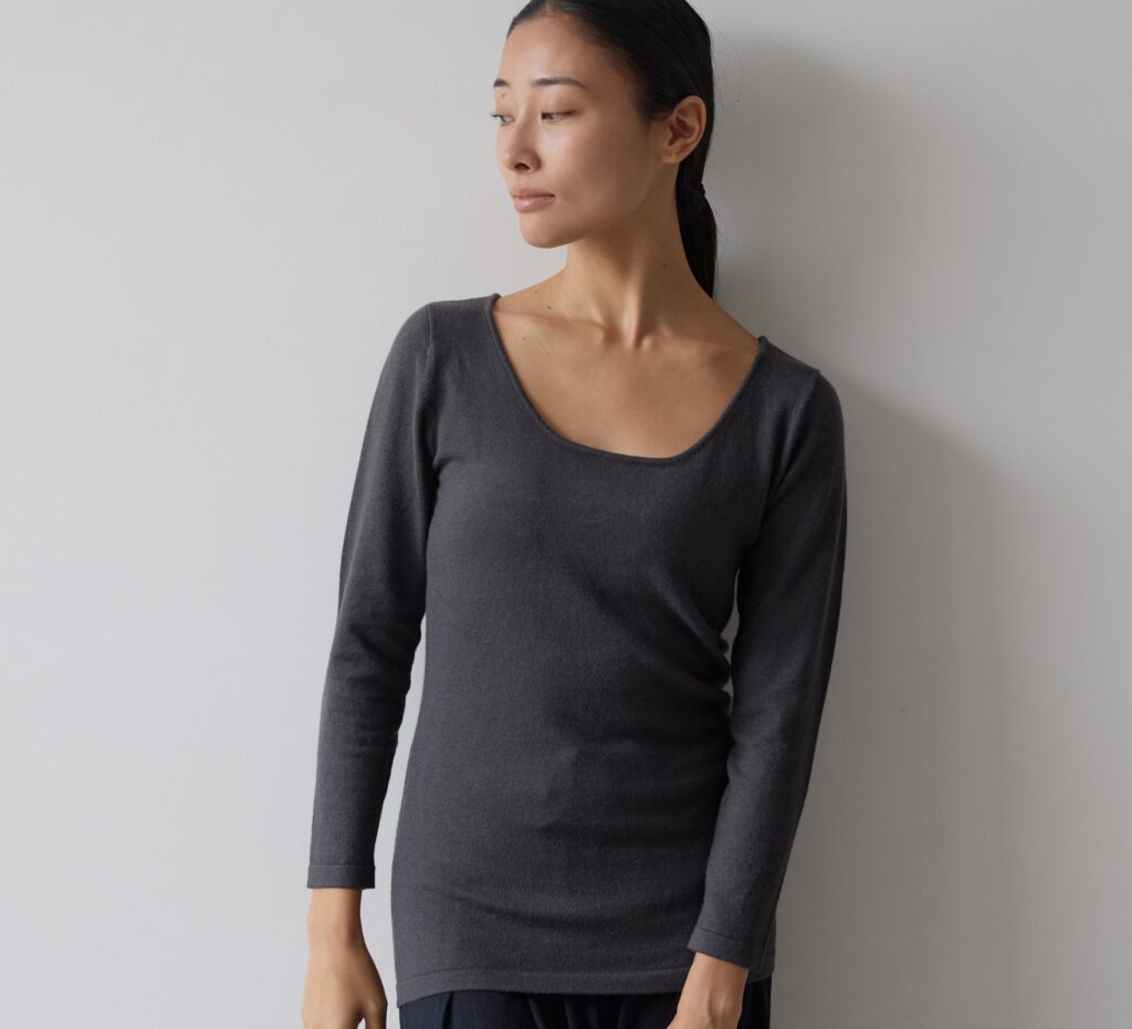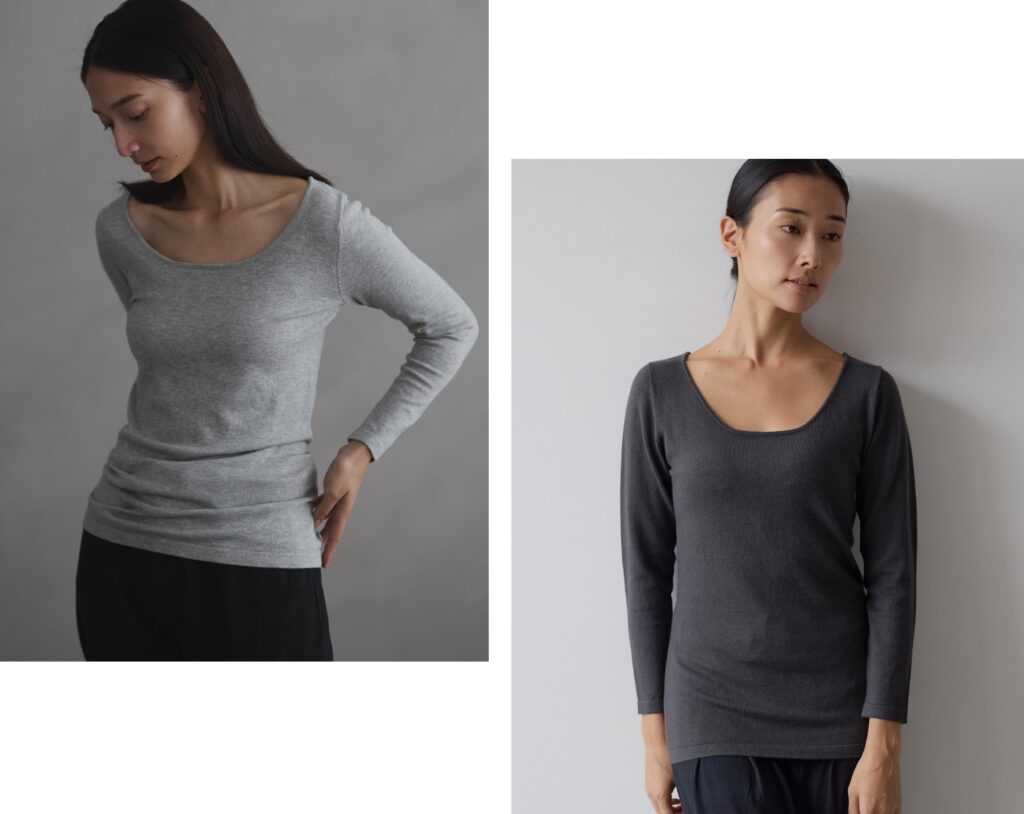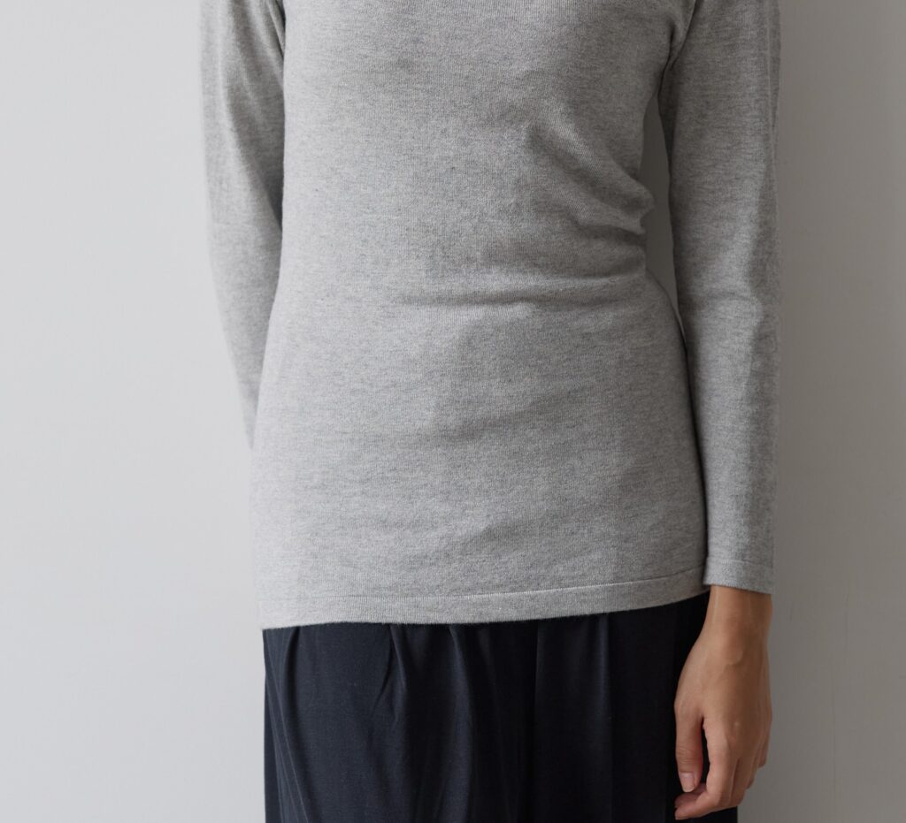 ブランドスタート初期に発売し、「あたたかくて、着心地も最高です」と、ご愛用者さまからご支持をいただいていたシルクカシミヤの長袖インナー。素材や材料の調整から少しお休みをいただいていましたが、この度、ようやく再登場が叶いました。