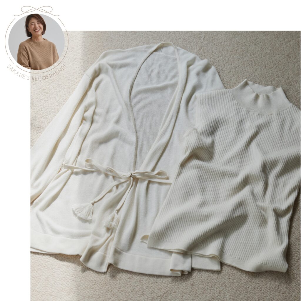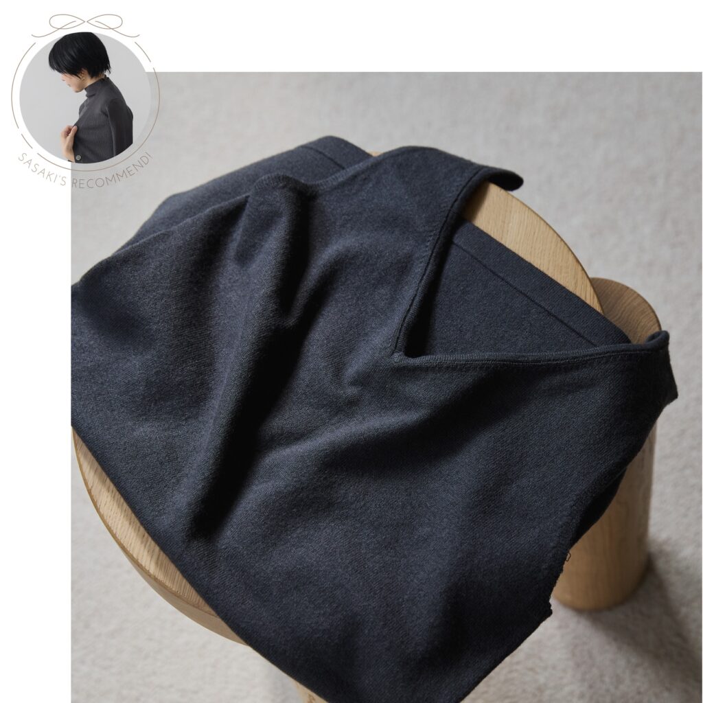 肌の上を滑るようなシルクカシミヤのふわっとした心地よさと、洗練された透け感。冬の空気に映える「白」を身に纏うだけで、背筋がすっと伸びる気がします。ホワイトパンツやデニムに合わせるのが今から楽しみ!