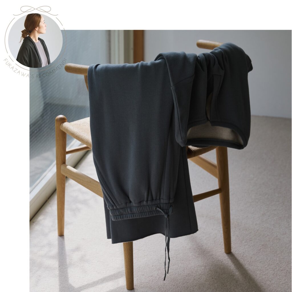 ウォームシルク キーネック 18,700 yen / ウォームシルク ワイドパンツ 22,000 yen