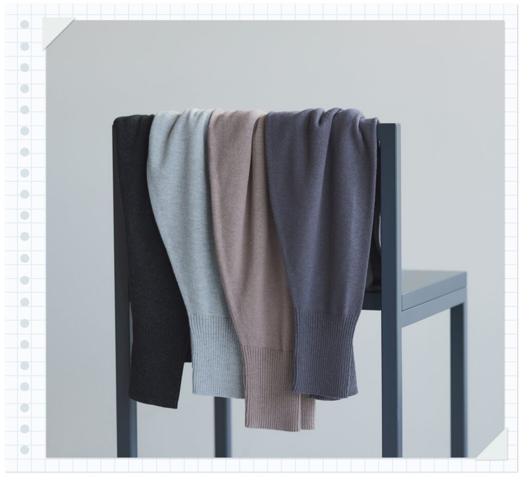 今回ご紹介したシルクカシミヤは全て同じ糸を使っています。編み方や厚さは違っていても、色味を揃えているので、セットで揃えるのもオススメです!