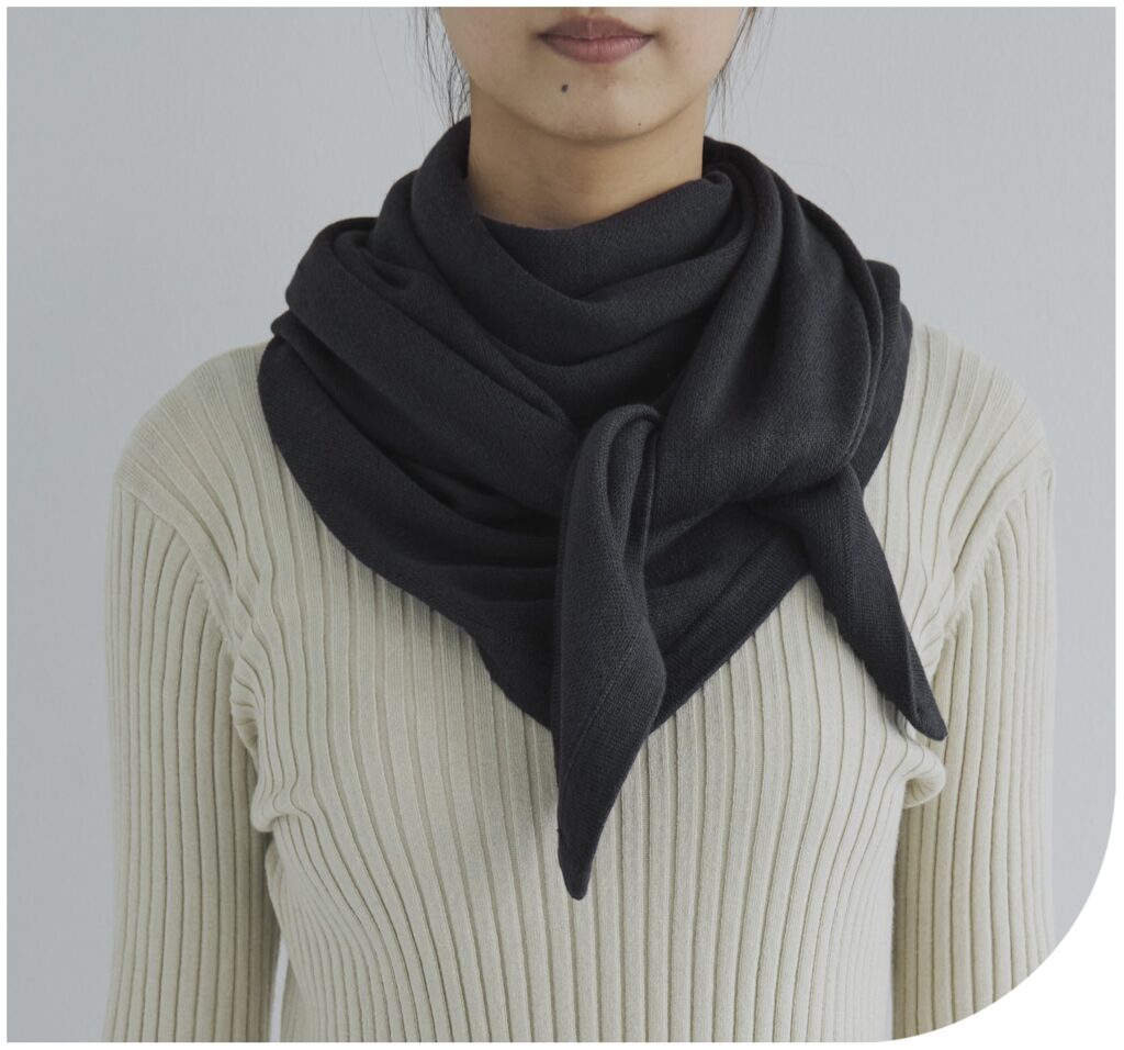 温活の基本「首」を冷やさないストールは、太い血管が通る首元を冷たい空気から優しく守り、効率よく全身の血行を巡らせてくれます。カシミヤ混の柔らかな肌触りで、チクチクストレスもフリー。大判の三角形はアレンジしやすく、肩から背中までカバーできるため、上半身の強張りを解きほぐしたい時にも最適です。