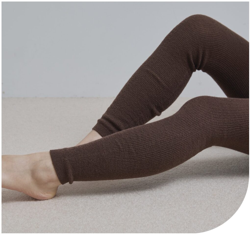 ウール・シルク・カシミヤという、3大あったか素材を組み合わせたレギンスは、下半身の体温を逃さずしっかりポカポカ。無縫製で編んでいるので、締め付けすぎないフィット感で血流を妨げず、下半身全体の巡りをサポート。スカートやパンツの下に忍ばせるだけで、冬の厳しい外気から下半身を丸ごと守り抜きます。