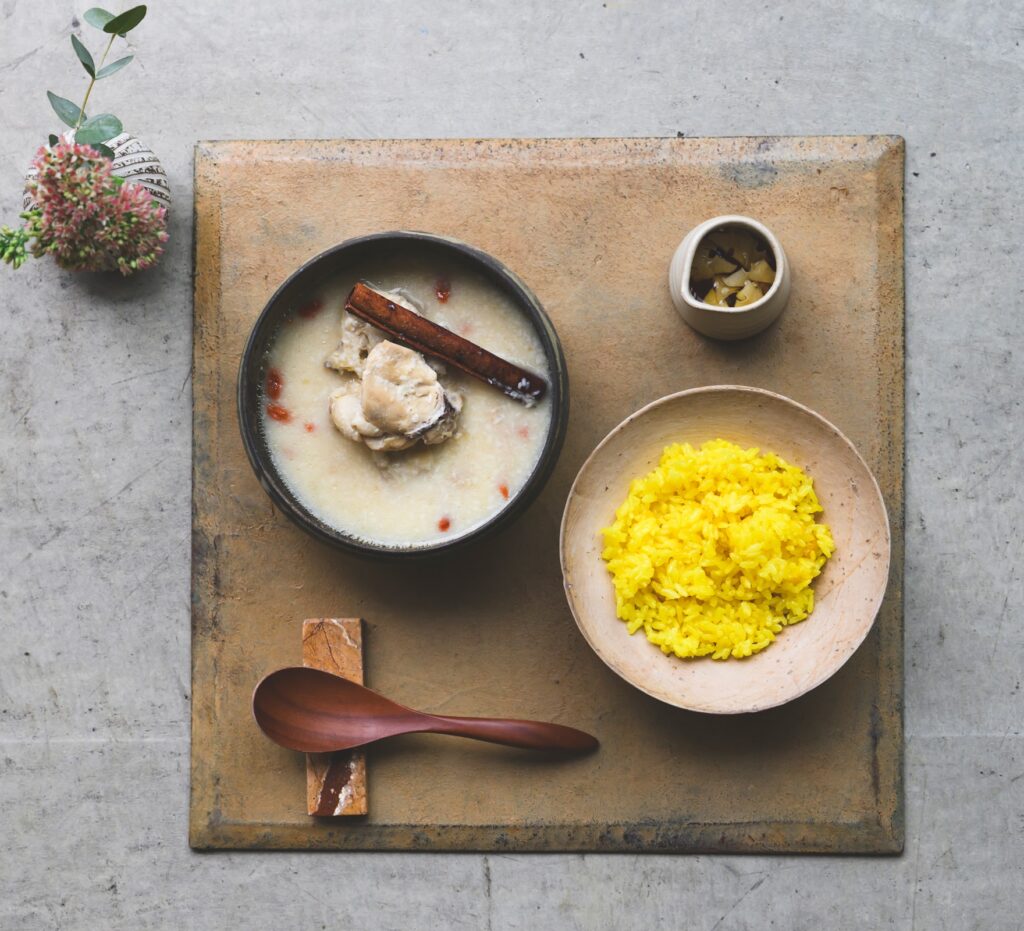 (5)ターメリックライス、にんにくナンプラーを添えて食べてもよし。
