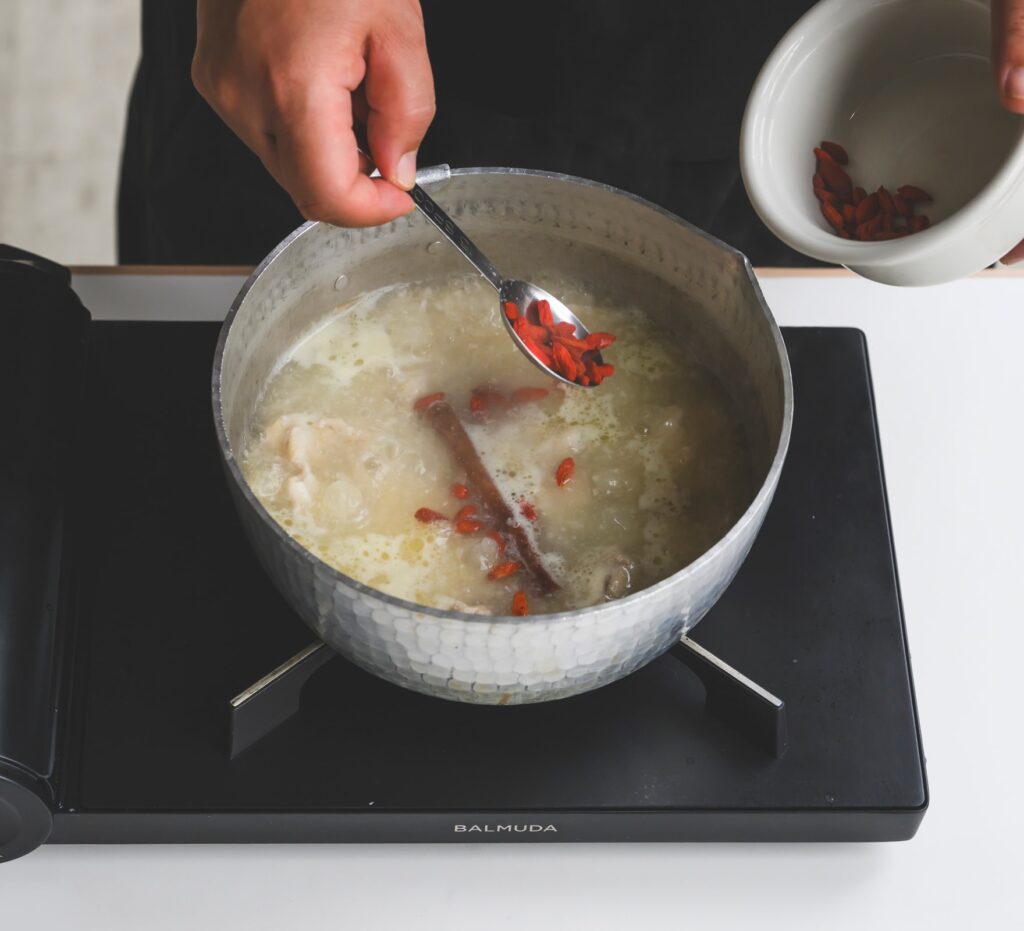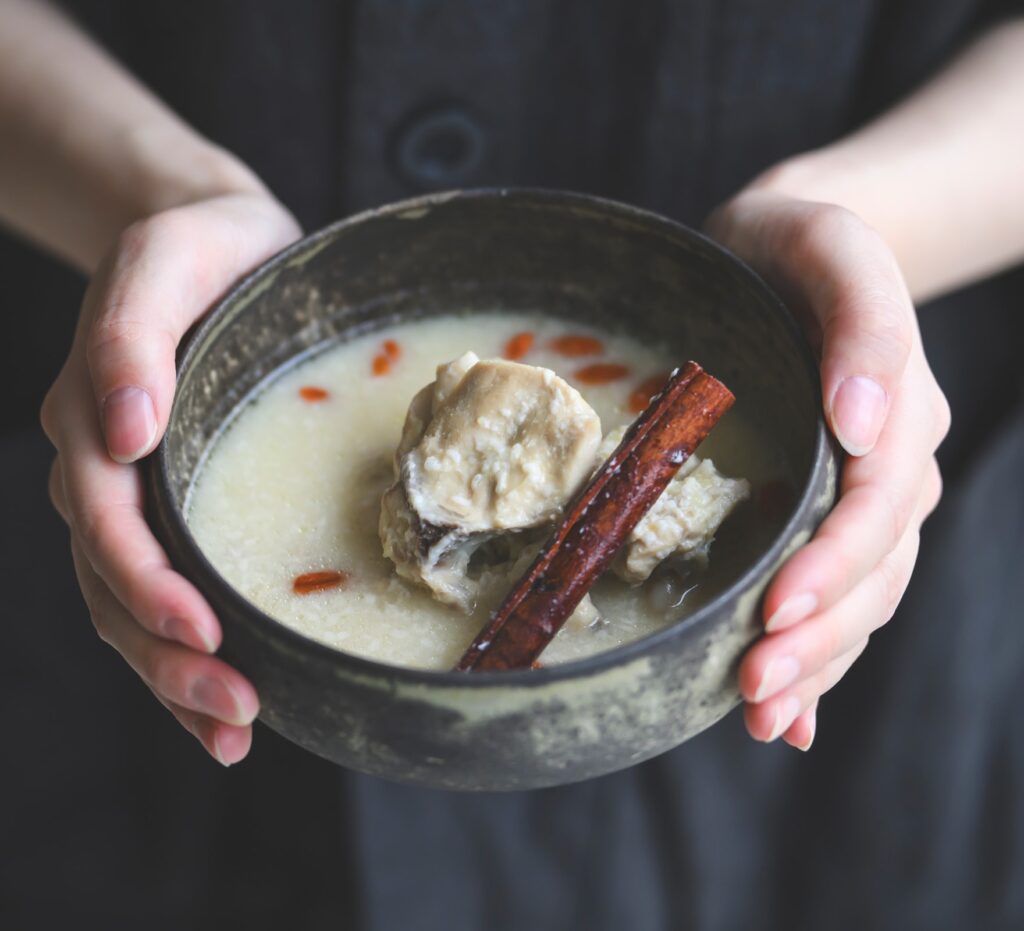 「守る」シナモン、「防ぐ」酒粕、「抑える」生姜、花粉対策の三銃士がしっかりととれ、まだまだ冷える体を芯からあたためるほっこりスープを。