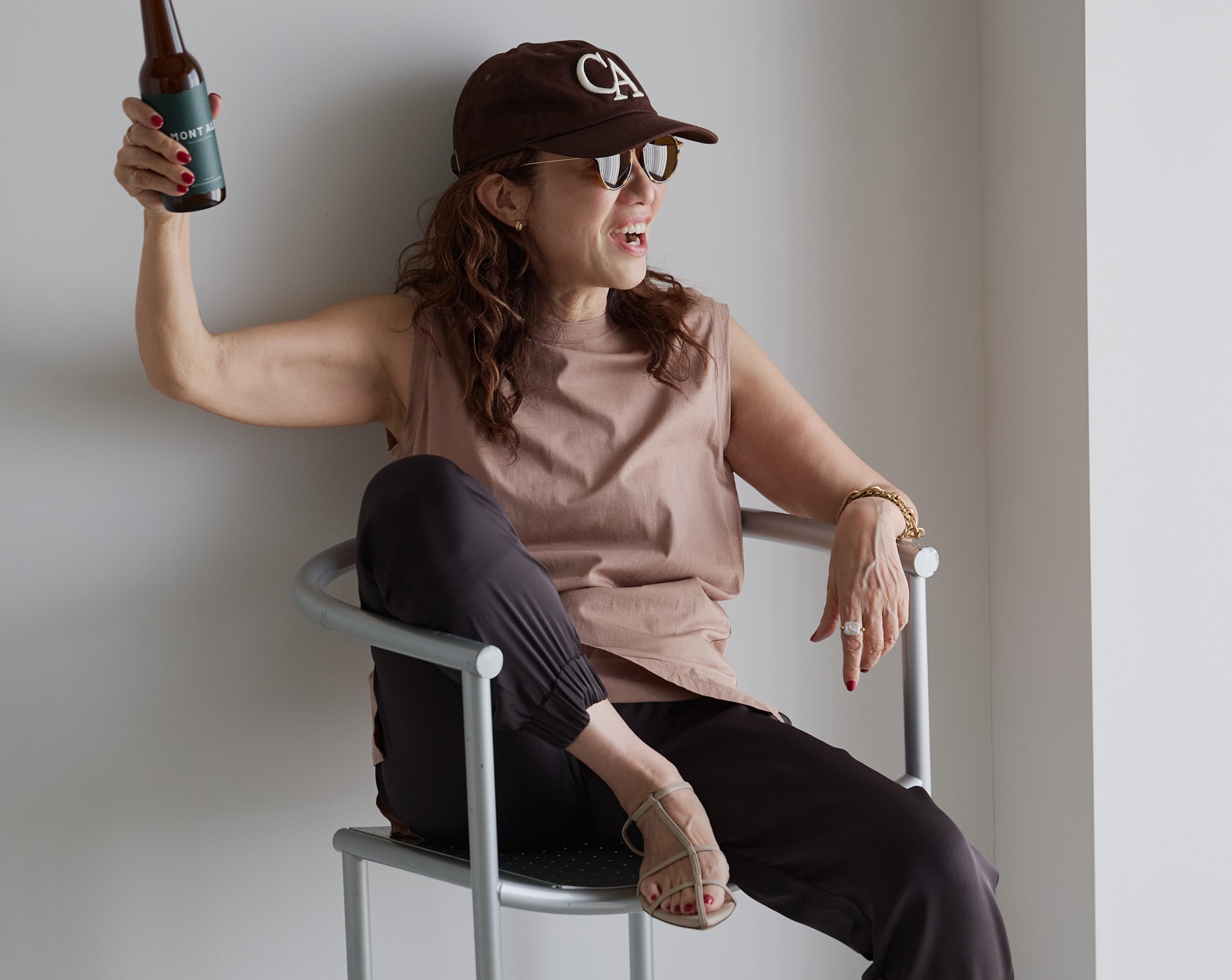 コーディネートの方向性を決めるのは、やはりアクセサリー。最近集めているベースボールキャップや大ぶりのブレスレット、リングを合わせて、ゴージャスでありながら「マダム風」にはならないアレンジを楽しんでいます。