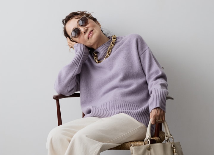 体のラインを拾わずストレスフリー、シルクウールの美人ニット