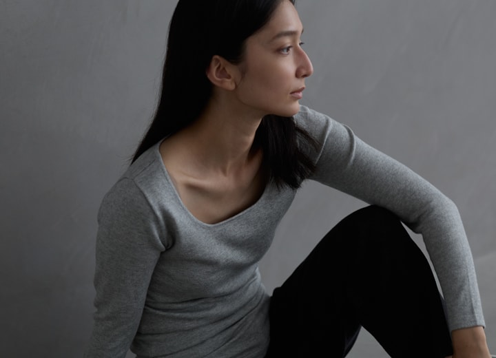 カーゴパンツと合わせてもカジュアルになり過ぎないのは絶妙なVネックの開きとか、前から後ろにかけて流れるようなラインの美しさによって成り立っています。カジュアル好き、でも女性らしく見せたい、という人には秀逸のアイテムだと思います。